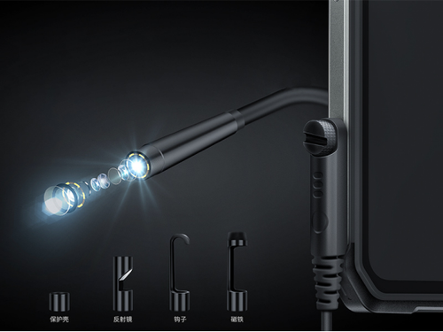 AORO遨游A9外接内窥镜拓展\走进你到不了的角落,设计了一个扩展接口,可用于外接内窥镜,你可以使用内窥镜观察那些你平常难以够得着的、狭窄的地方,如暖通空调、排气管、汽车发动机、沙发角、浴缸管、厕所等,找到问题所在并进行维修。